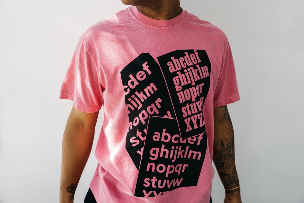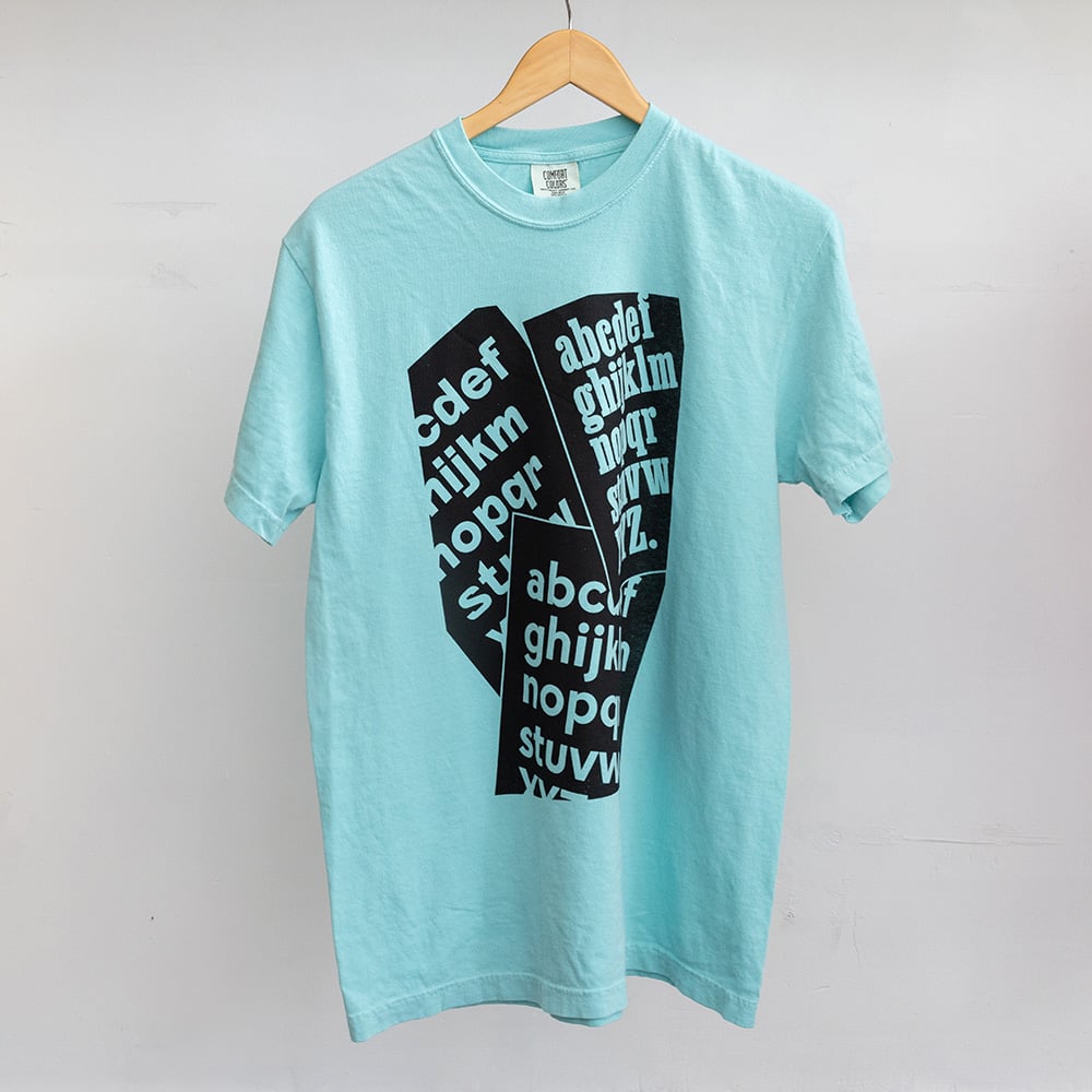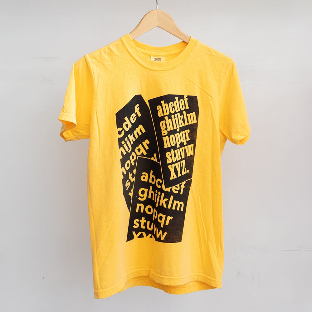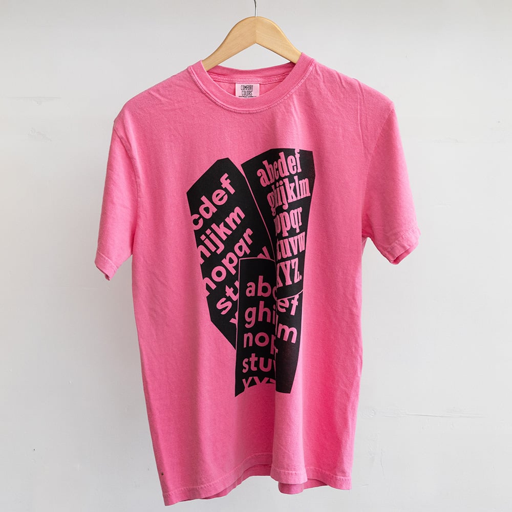 Ben never wanted to make a shirt for XYZ, but then he designed a poster for the Inside/Outside show curated by Christopher Loss. When Pete Holohan silkscreened the poster, he pulled a print on a blank shirt he had handy, and a shirt was (reluctantly) born.